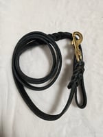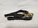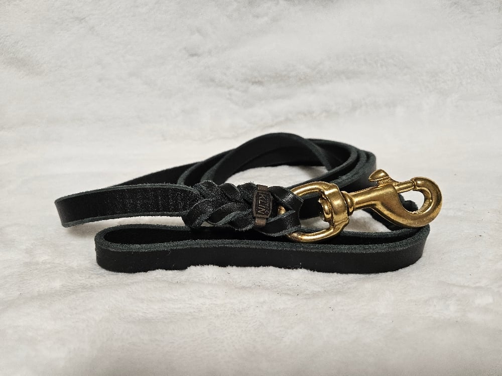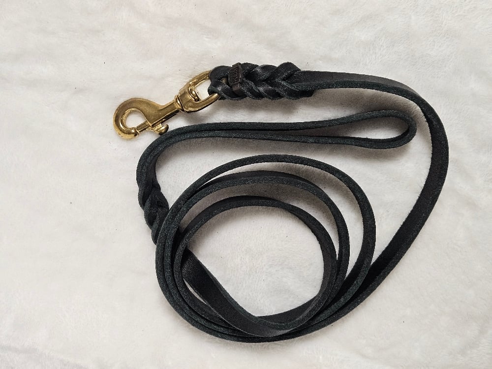Black Leather, Brass Hardware, Braided Ends, handmade, imported from Germany.
